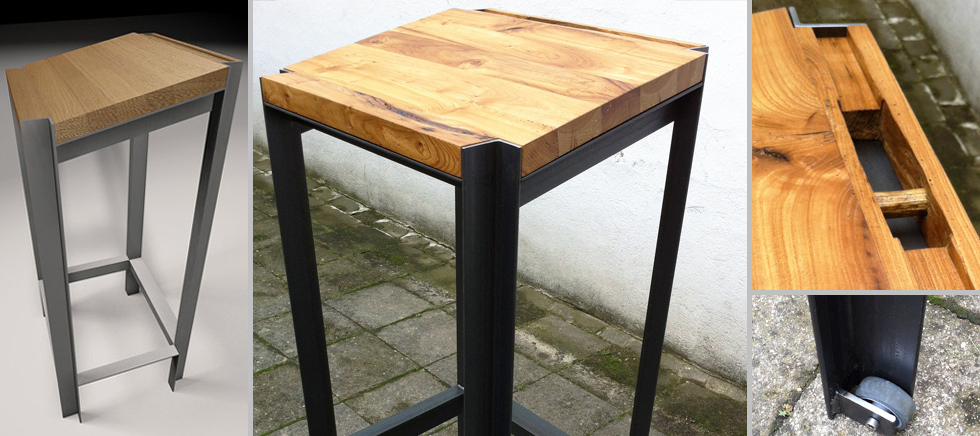 Ein Freund stellte mir altes Ulmenholz aus dem Abriss einer 100-jährigen Scheune zur Verfügung. Mit dem Entwurf von puristischen Einzelmöbeln gelangt dieses Material zur neuen Verwendung.